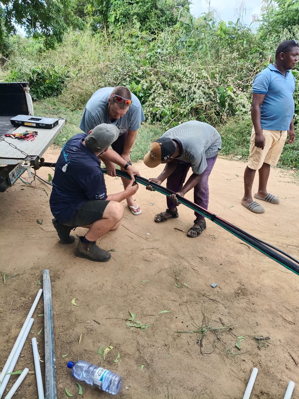 But our mission didn’t stop there. As part of our charitable efforts, we also brought solar power and clean water to a nearby village of around 4,000 people. Families who once walked nearly a kilometer each day for fresh water now have access right in the heart of their community — thanks to a solar-powered (borehole) water pump we installed.